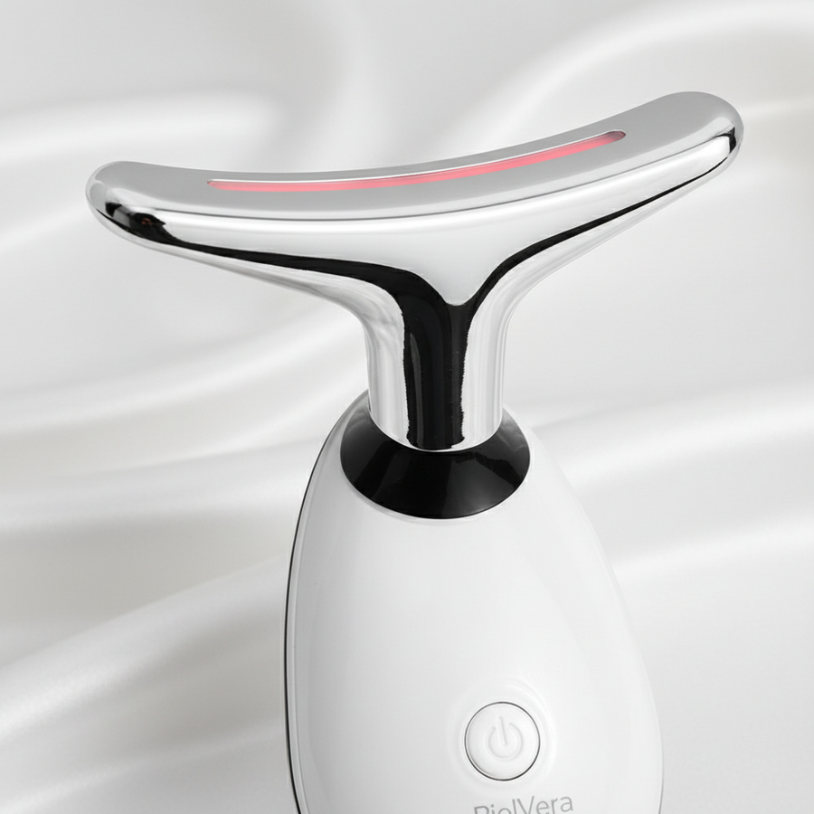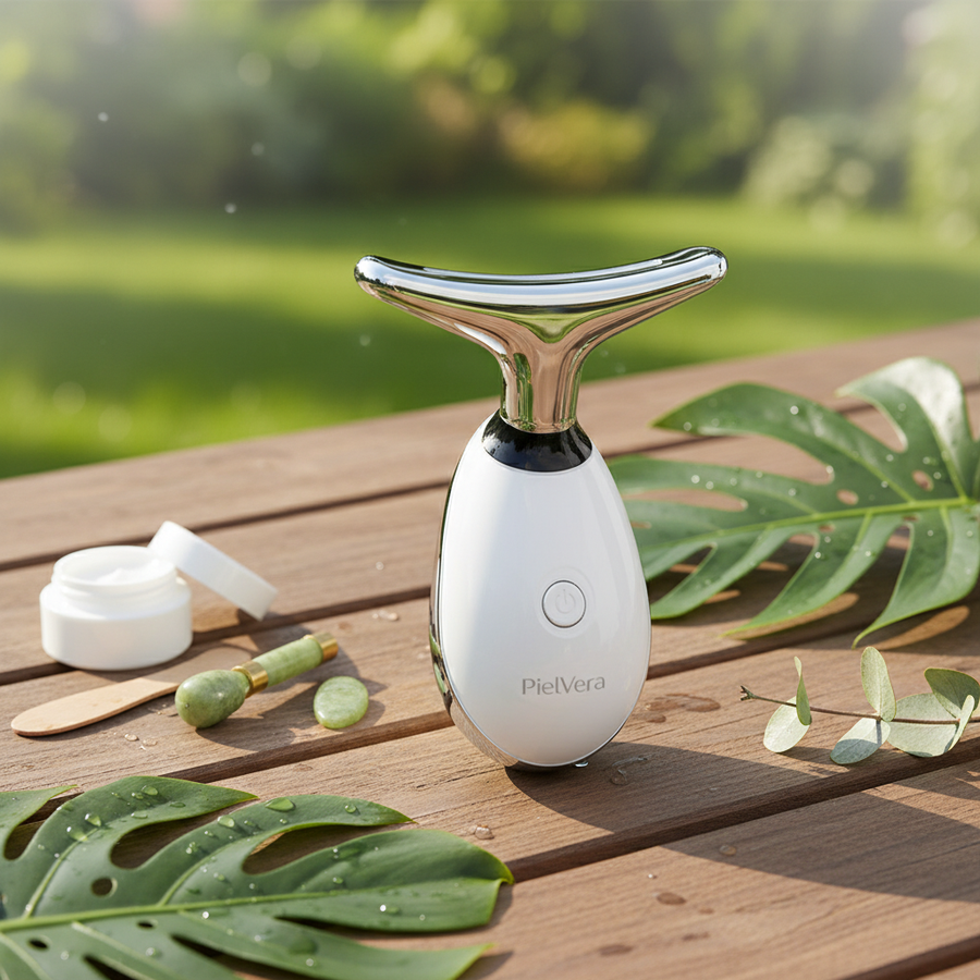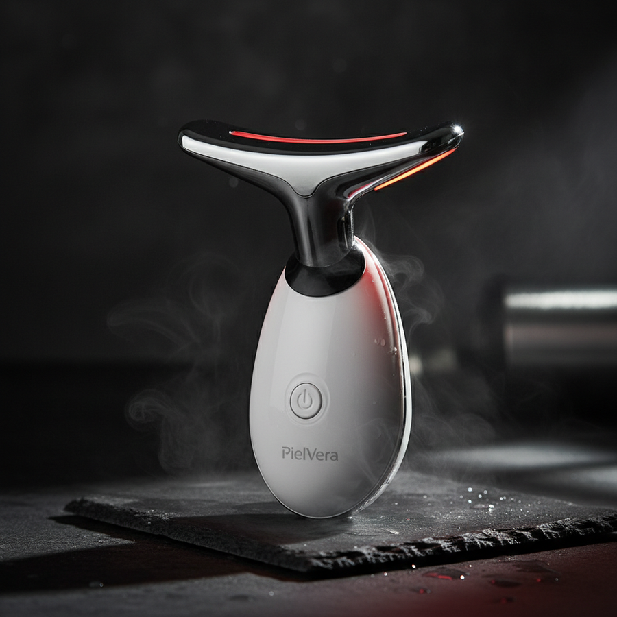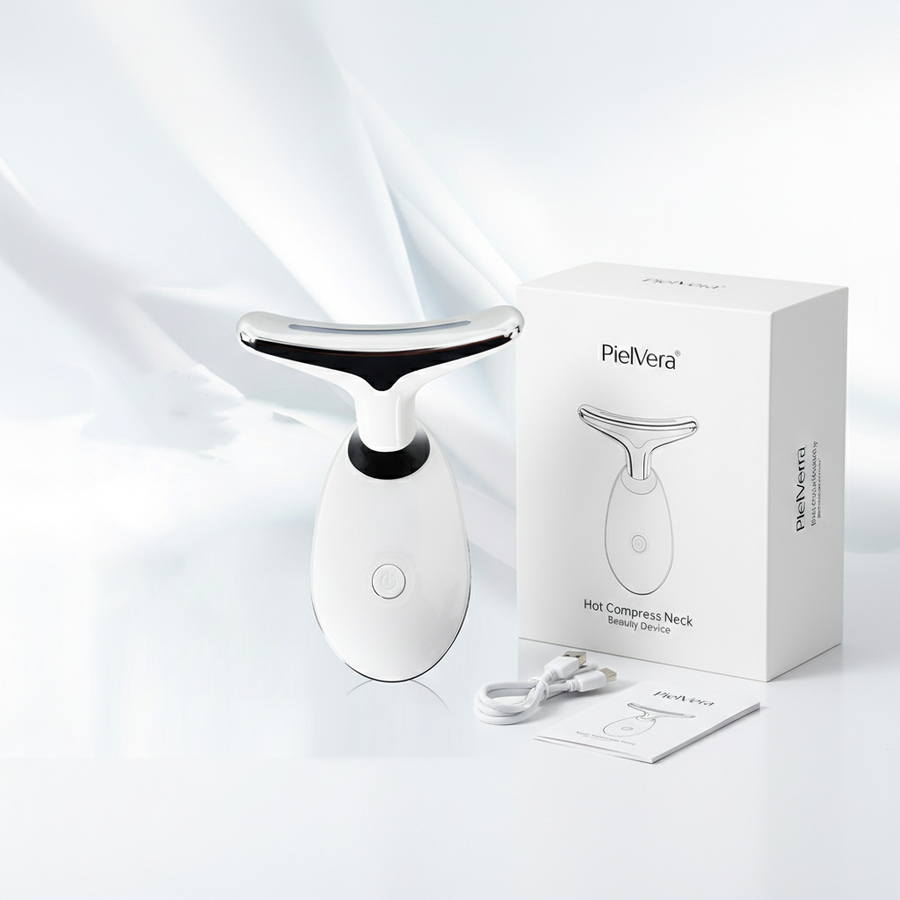 Meet PielVera™, the viral 3-in-1 facial tool designed to combat "tech neck," define your jawline, and reverse signs of aging without invasive needles. Engineered with a unique 160° Dolphin Tail curve, it hugs the contours of your neck and face perfectly, delivering targeted therapy where you need it most.